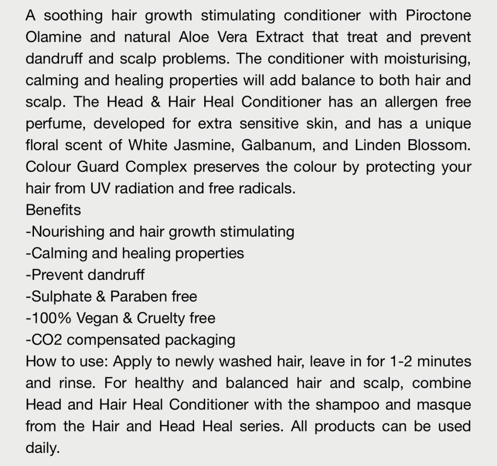 I have mild to moderate eczema on my scalp. I color treat my hair every six weeks, and I like my hair to stay long, thick, and as soft as possible while keeping my color in tact. I wash my hair once a week and use heat on it (blow dry / flat iron) a few times a month. The Maria Nila Heal shampoo and conditioner are the best I have ever used. Hands down. No contest. My scalp is much less dry and irritated, and my hair grows extremely fast now. I’ve been growing it out for years and after only one year of using these products my hair grew so much I had to cut four inches off last month because it had gotten TOO long. I recommend this for anyone who has dandruff, dry scalp, eczema, or who simply loves having soft healthy hair that grows quickly!